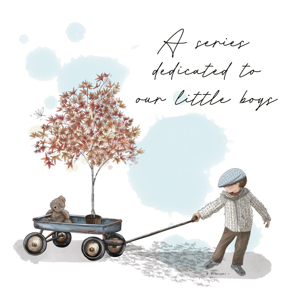 I want to draw our boys in a much more positive light. I want to show how their inquisitiveness is pure — with their wide-eyes open and hearts ready to accept all the tenderness they deserve. That they are creatures of innocence that still need tending and praise. How their messes lead to discoveries. How they, as boys, are nurturing in a quieter less noticeable way. That their intelligence is not held by how they performed on a standardized test, but rather can be seen in how they navigate the world. Lastly, I want them to know they are of equal importance no matter where they stand on the gender binary. Our little boys deserve to be seen as wonders too. And so, this series is dedicated to all the little boys with scrapped elbows, paper airplane dreams, open-hearts, and muddy knees. May you all know how incredible and important you are too.